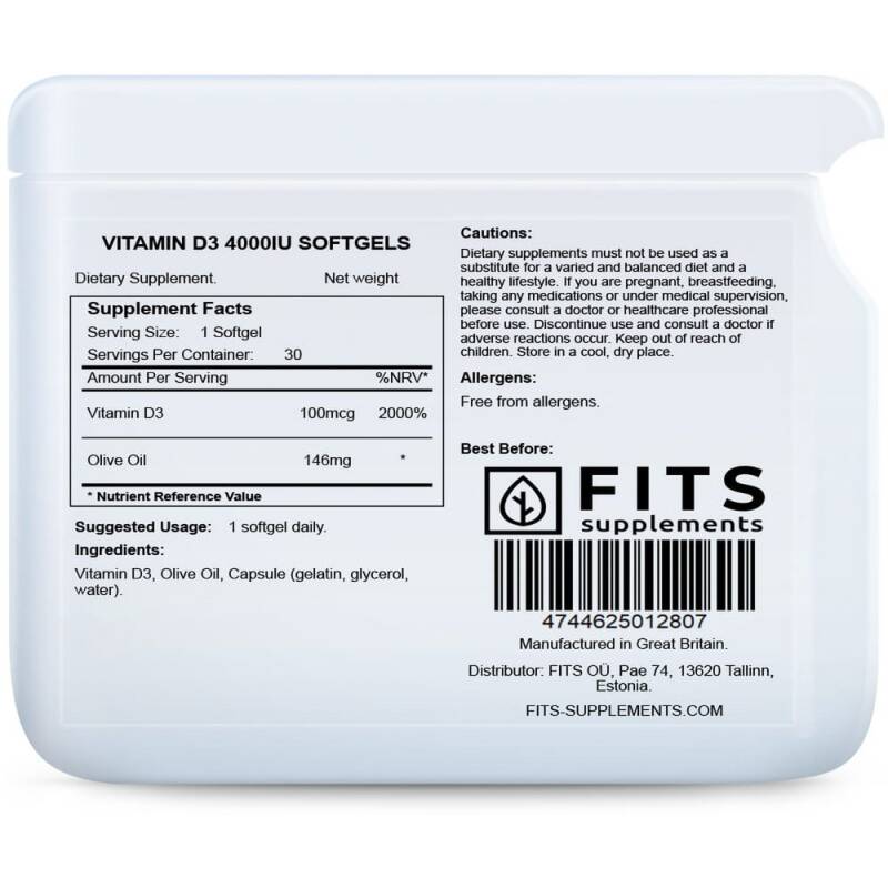 Vitamine D3 4000IU 30 softgels